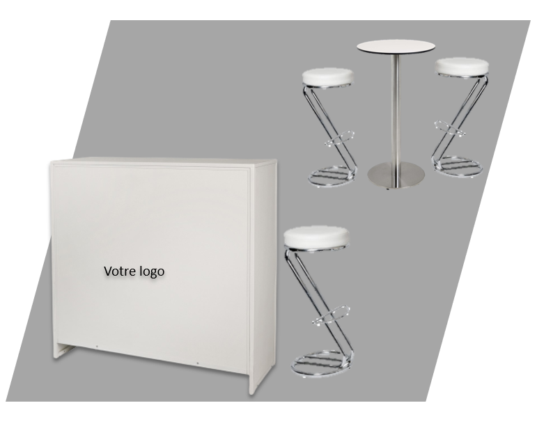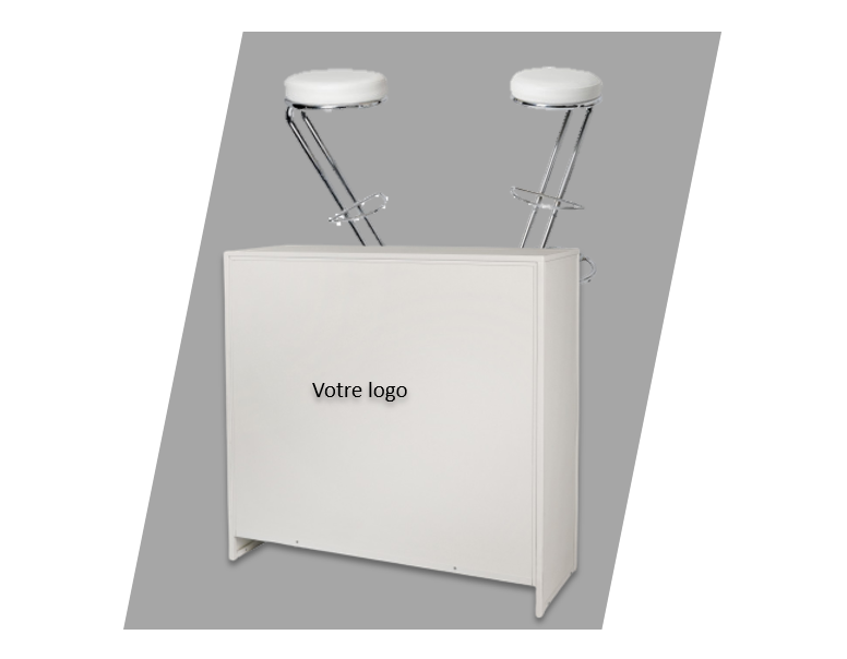 - Personnalisation : logo et numéro de stand imprimé sur les comptoirs des stands Essentiel, Classic et Silver.